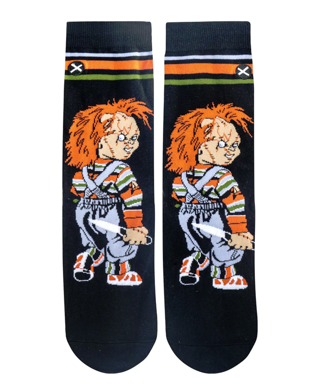 Die gruseligste Puppe von allen ist zurück. Und sie hat nichts von ihrem ganz besonderen Charme verloren. Diese Chucky die Mörderpuppe Damen Socken zaubern ein Lächeln auf das Gesicht eines jeden weiblichen Fashion Killers. Wenn du auch zu denen gehörst, die Chuckys eigenen Sinn für Gerechtigkeit und seinen blutigen Humor verstehen, dann sind diese schaurig-schönen Socken ein absolutes Must-have für deine Garderobe.