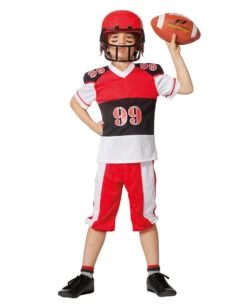 Der Kinderfasching wird sportlich! Mit dem klassischen Football Spieler Kinder Kostüm wirst Du zum gefeierten Star. Die Verkleidung besteht aus einem gepolsterten Oberteil und einer passenden Hose. Optisch überzeugt vor allem das Design, das an die echten Trikots der großen amerikanischen Mannschaften wie den Patriots oder den Broncos erinnert. Die Farbgebung in Rot, Schwarz und Weiß ist sehr auffällig. Auf dem Trikothemd sieht man die Spielernummer 99, die für einen echten sportlichen Helden steht. Auch auf dem Kindergeburtstag oder der Motto Party mit Sportler Thema ist das Kostüm ideal. Mit dem passenden Aufblasbarer Football könnt Ihr prima im Garten oder sogar im Haus spielen.