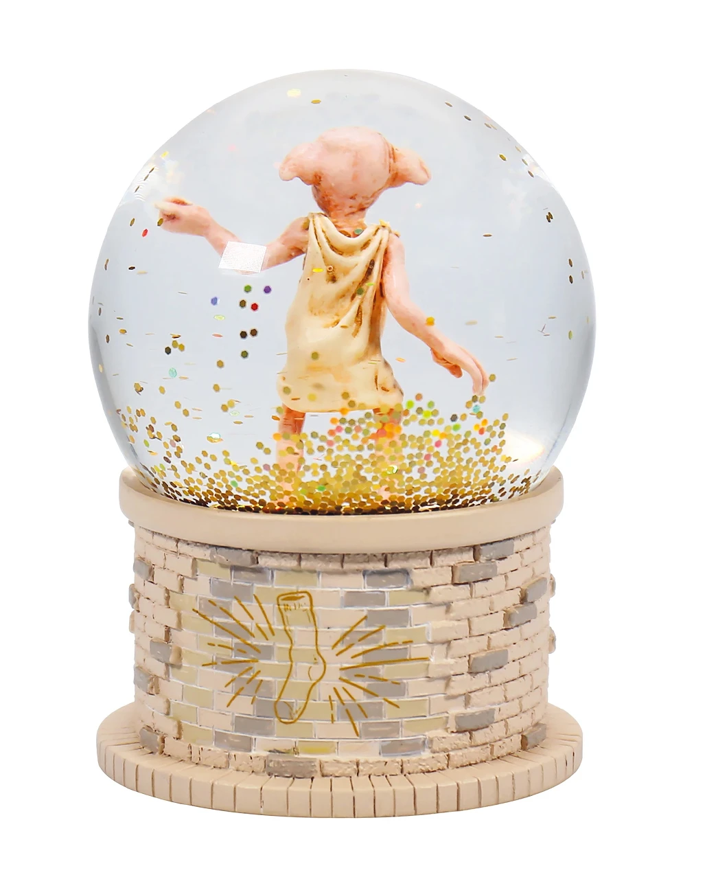 Die Harry Potter Dobby „Schneekugel“ verleiht jeder Weihnachtsfeier in der Weihnachtszeit einen magischen Touch. Im Inneren der Glaskugel befindet sich eine Polyresin-Skulptur des Hauselfen Dobby. Der Sockel der Kugel sieht aus wie eine Backsteinmauer. Diese trägt die Aufschrift „Dobby has no master. Dobby is a free Elf“ auf der Vorderseite und die Abbildung einer Socke auf der Rückseite. Schüttele den Globus einfach, damit es über Dobby Gold schneit.