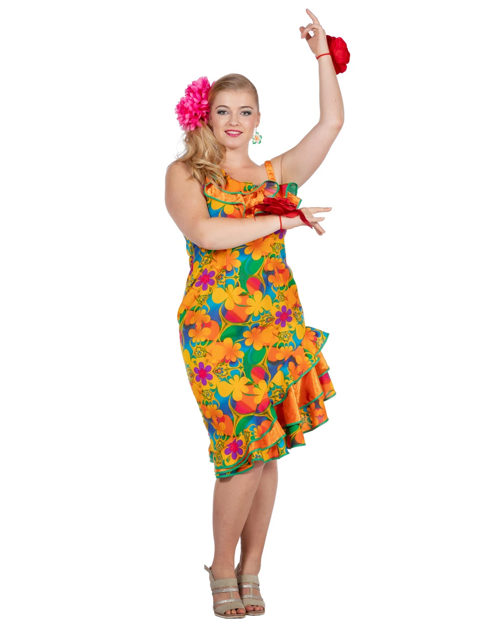 Die nächste Sommerparty kann kommen. Das frische Blütenmuster des Hawaii Blumen Kleid zaubert Leben in den Raum und an den Strand. Egal, ob du die nächste Beachparty standesgemäß feiern und es in einer bunt rauschenden Partynacht ordentlich krachen lassen willst oder Farbe in den Fasching bringen möchtest. Keine Party ohne fröhlich buntes Partygirl im sexy Kleid. Und das bist in diesem Fall natürlich du in deinem wunderschönen Kostümkleid im hawaiianischen Stil.
