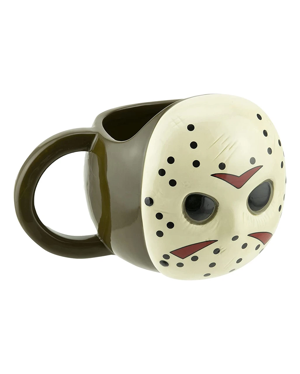 Die Jason Voorhees Friday the 13th 3D Tasse besticht durch ihren namensgebenden 3D-Effekt: An einer Seite der Jason-Tasse prangt die berühmte Hockeymaske mit dunklen Augenhöhlen und charakteristischen Luftlöchern. Das Freitag der 13.-Merch eignet sich aufgrund seiner Größe und seines Fassungsvermögens auch als Mini-Blumentopf. Noch mehr Jason Voorhees-Fanartikel wie die Jason Hockey Maske weiches Vinyl und das „Friday the 13th props museum“ Buch haben wir ebenfalls im Horror-Shop.com!