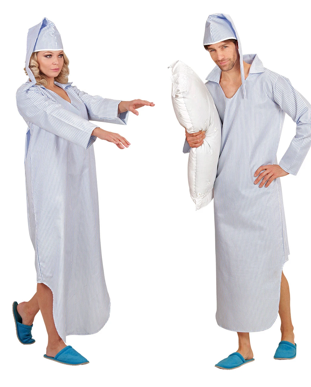 Wer noch nach genialen Verkleidungen für die närrische Zeit sucht, liegt bei unserem Kostüm Nachthemd mit Mütze goldrichtig! Auf Faschings Feiern und Mottopartys wirst du unter Garantie für Lacher sorgen und wenn du heimkommst, kannst du direkt ins Bett fallen!