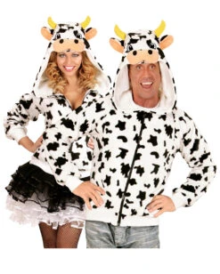 In dieser Kuh Kostüm Jacke wirst du richtig süß aussehen. Die weiße Jacke mit schwarzen Kuhflecken ist ein perfektes Kostüm-Accessoire für Fasching & Karneval. Dank der kuscheligen Kapuze mit Kuhgesicht wird dein Kostüm ein unverkennbarer Eyecatcher. Ganz gleich für welches Geschlecht – dieses Kuh Kostüm sorgt an Halloween und Fasching für wahre Begeisterung.