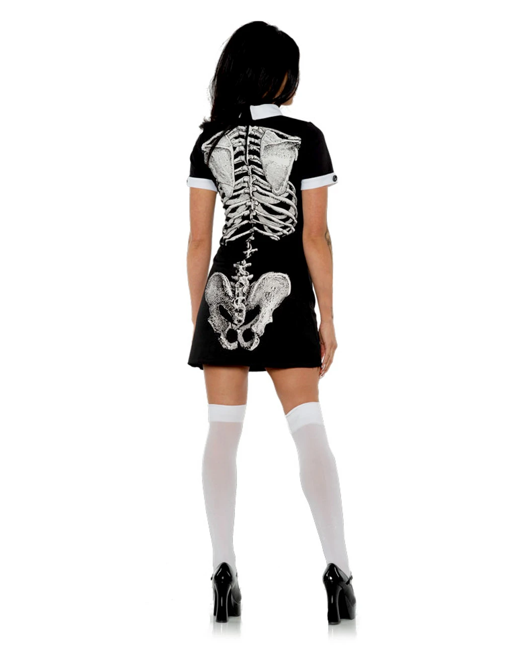Lieferumfang: 1x Kurzärmliges Skelett Minikleid mit Kragen