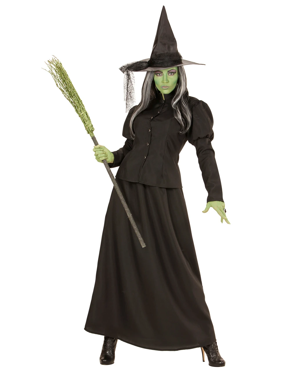 Die Hexen Verkleidung macht aus dir eine dunkle Magierin wie sie im Buche steht. Ob Fasching oder Walpurgisnacht, das Märchenhexe Kostüm lässt dich beeindruckend düster und geheimnisvoll aussehen. Das Kostüm der Magierin besteht aus einem langen schwarzen Rock, der leicht ausgestellt ist und einer taillierten schwarzen Jacke. Passend zu dieser Robe der Hexe trägt die Dame einen schwarzen spitzen Hexen Hut. Um deinen Auftritt zu pimpen, empfehlen wir die passenden Accessoires aus unserem Shop. Wie wäre es mit dem Gekrümmter Hexenbesen zerlegbar 125 cm.