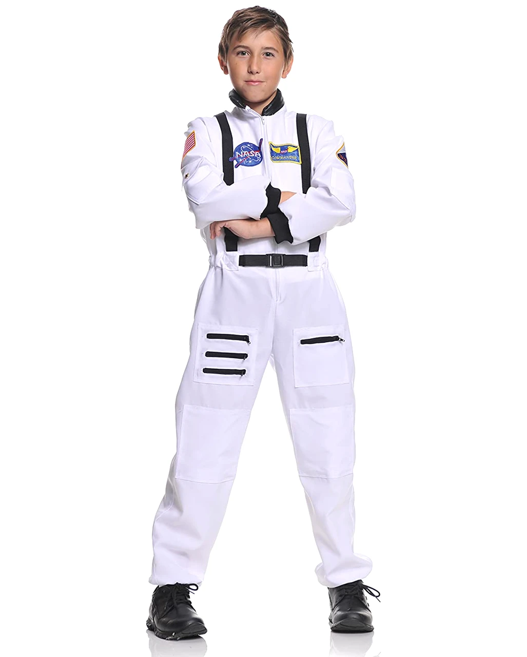 Einmal im Leben in das Weltall fliegen, ist der Traum von vielen Menschen. Dafür braucht man zuallererst natürlich den passenden Anzug. Mit dem weißen NASA Astronauten Kinderkostüm können sich kleine Weltraumfahrer schon mal die passende Verkleidung zulegen und beim Karneval die Mädchen beeindrucken.