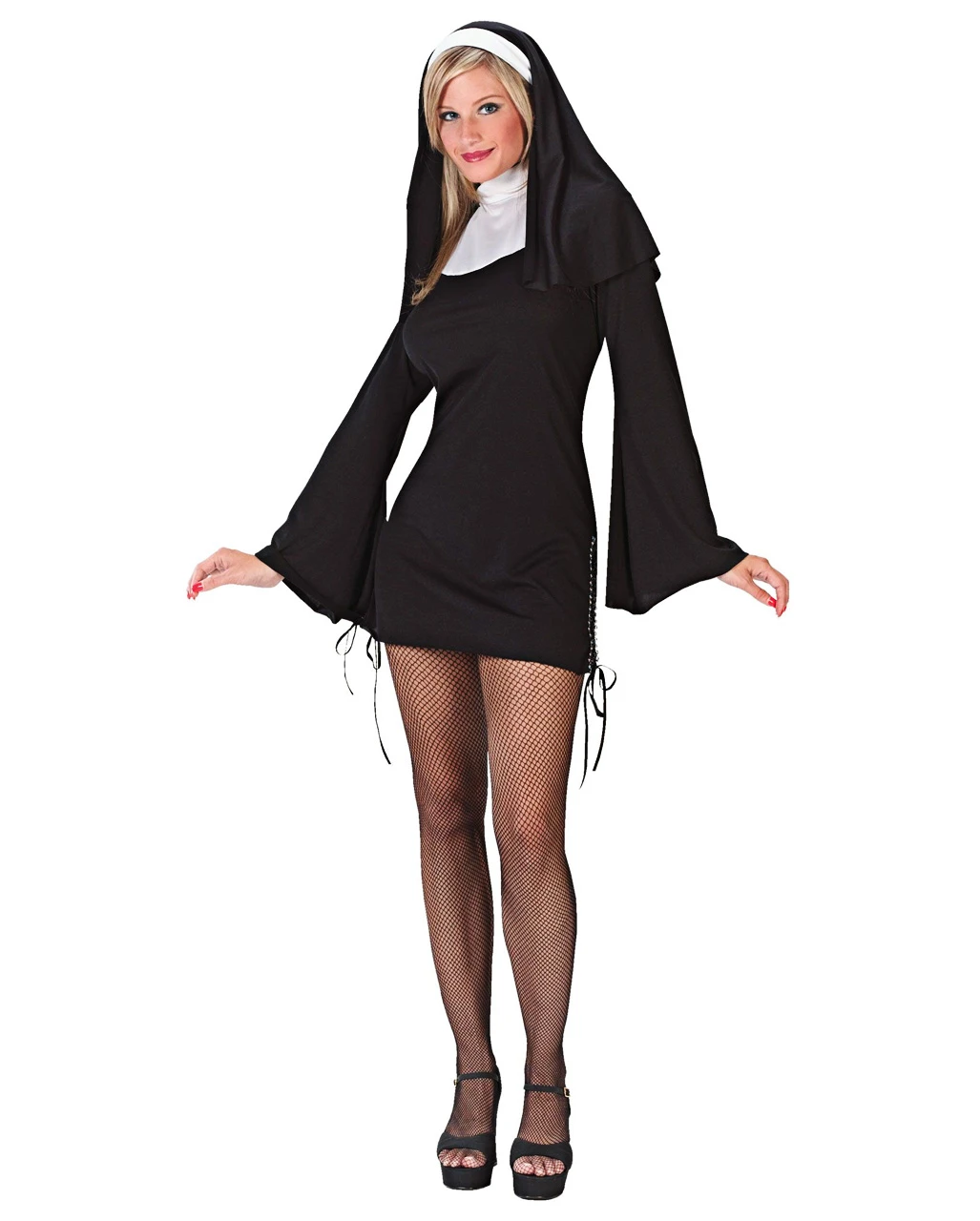 In diesem heißen Aufzug wird die Predigt des Pfarrers gleich zur Nebensache. Das Naughty Nun Damenkostüm ist ein sexy Halloween Kostüm für frivole Ordensschwestern! Schon als du dein Gelübde zur Einhaltung von Abstinenz beteuert hast, wusstest du: Das wird eh nix! Dafür feierst du einfach viel zu gern. Schmeiße eine feucht-fröhliche Halloween-Party und trage dabei ein heißes Nonnen Kostüm. Hierzu passen schwarze Pumps und eine sexy Strumpfhose, die dich perfekt in Szene setzen. Dennoch solltest du schon mal den Rosenkranz und dein Gebetsbuch bei dir tragen. Nach der Party wirst du nämlich viel zu beichten haben…