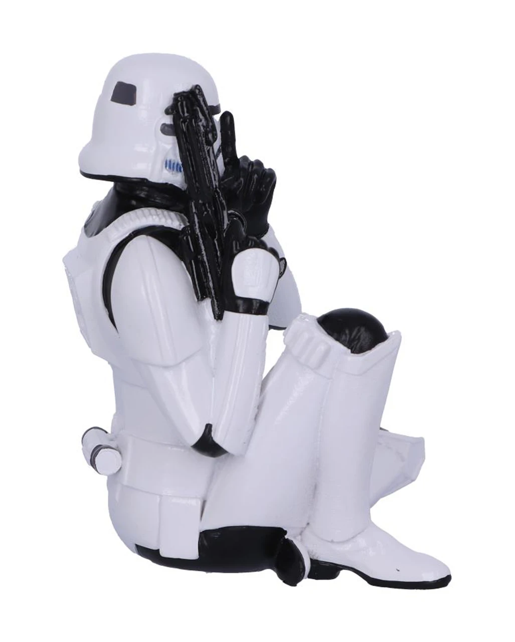 Unser Trooper, der mit angewinkeltem Bein auf dem Boden sitzt und den Zeigefinger vor dem Helm hält, um so den „Mund“ zu verschließen, stellt Konfuzius‘ Analect „Sage nichts Böses“ dar. Gegossen aus feinstem Polyresin und sorgfältig von Hand bemalt, ist diese Stormtrooper-Figur ein perfektes Accessoire für jeden Fan, der sich auf alternative, Sci-Fi- und Filmartikel spezialisiert hat. Noch mehr Star Wars-Fanartikel wie das Anakin Skywalker Lichtschwert und die Three Wise Stormtrooper Figuren haben wir ebenfalls im Horror-Shop.com!