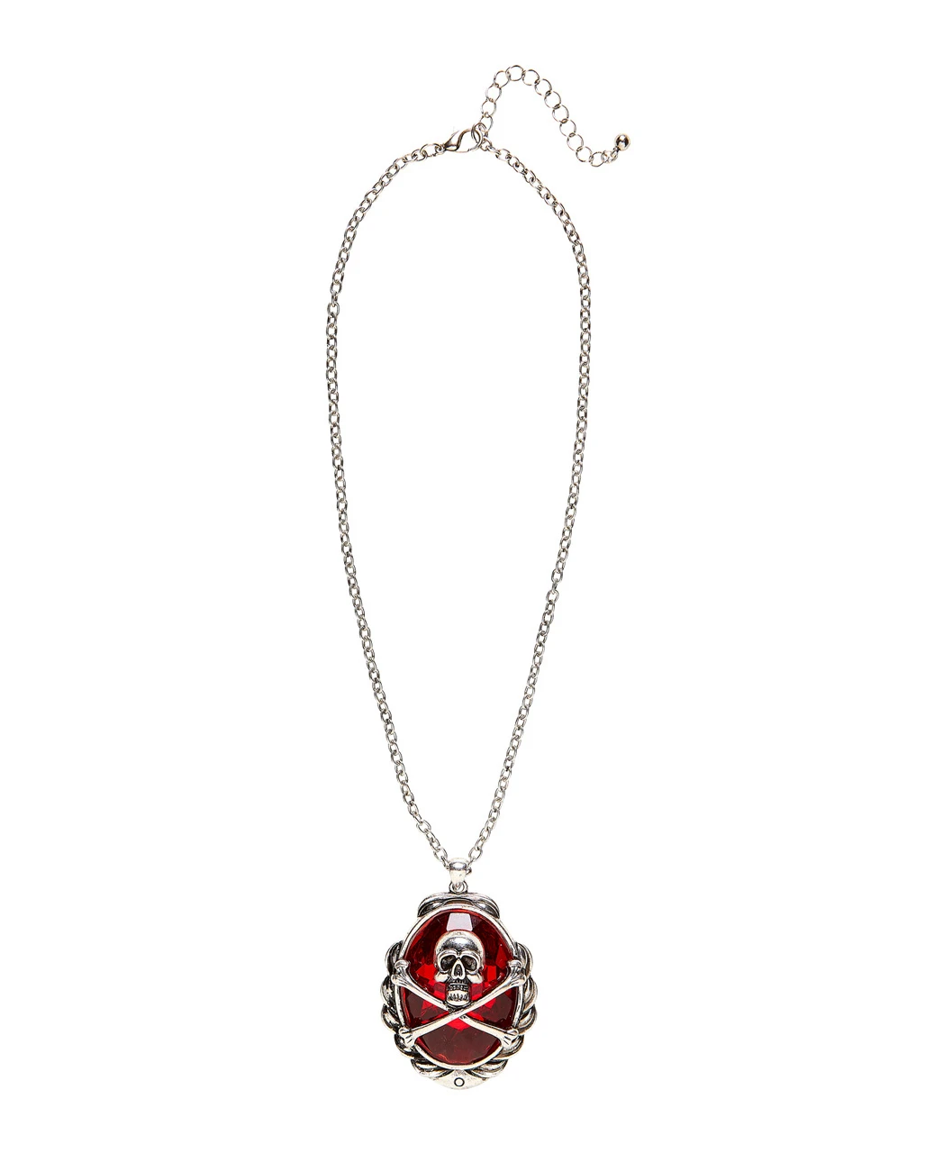 Die Piratenkette mit Totenkopf & Knochen ist das ideale Kostüm Accessoire für deine Verkleidung als Piratenbraut oder Seeräuber. Als Freibeuter kennst du keine Gnade. Du braust über die Weltmeere und enterst, was das Zeug hält. Deine wertvollste Beute aber hängt an deinem Hals. Du trägst die blutrote Kette des legendären Kapitän Hinkebein als Trophäe, wenn du an Halloween feiern gehst. Du feierst deinen Sieg und deine Erfolge als coolster Pirat seit Jack Sparrow.