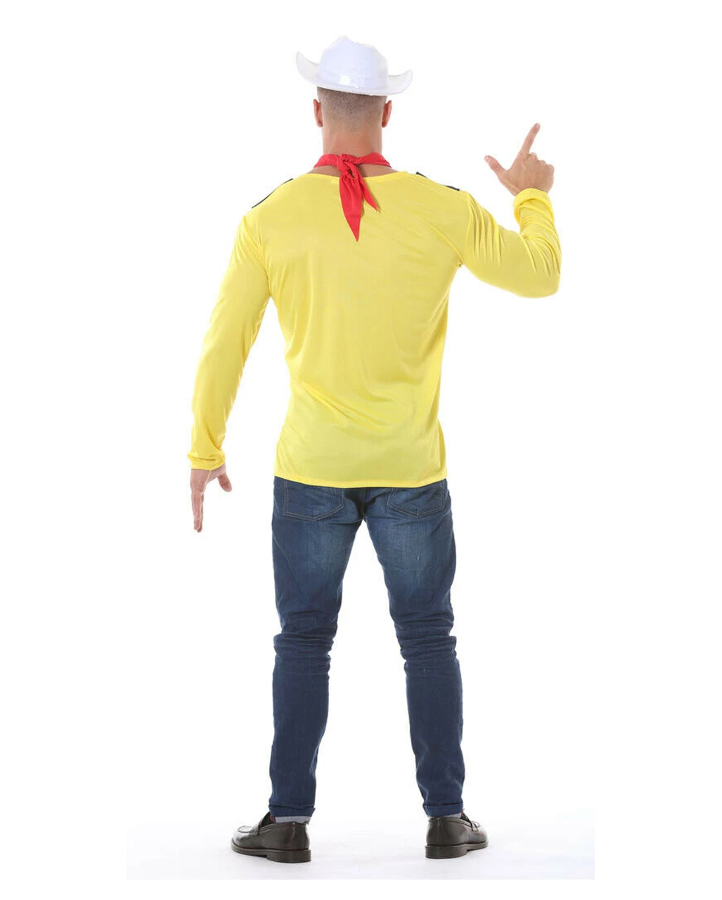 Das Pistolero Herrenkostüm besteht aus einem klassischen roten Halstuch und einem gelben Oberteil, an das eine schwarze Weste angenäht ist. Um dein Kostüm zu vervollständigen, empfehlen wir den Cowboy Hut mit Hutband schwarz und dem Cowboy Pistolen Holster.