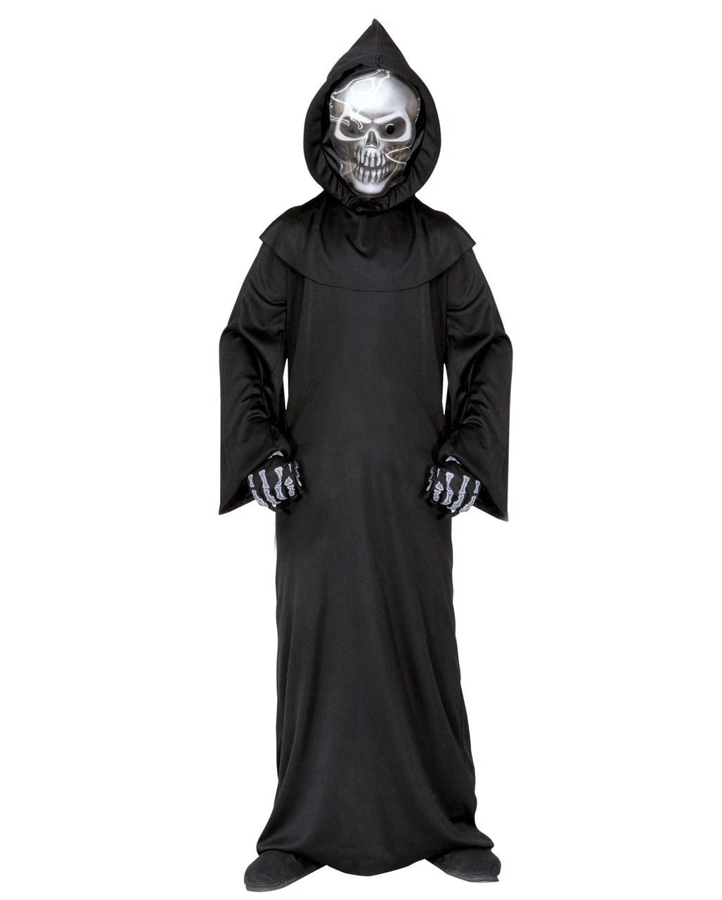 Klassisches Grim Reaper Kostüm für Kinder mit Maske & Handschuhen